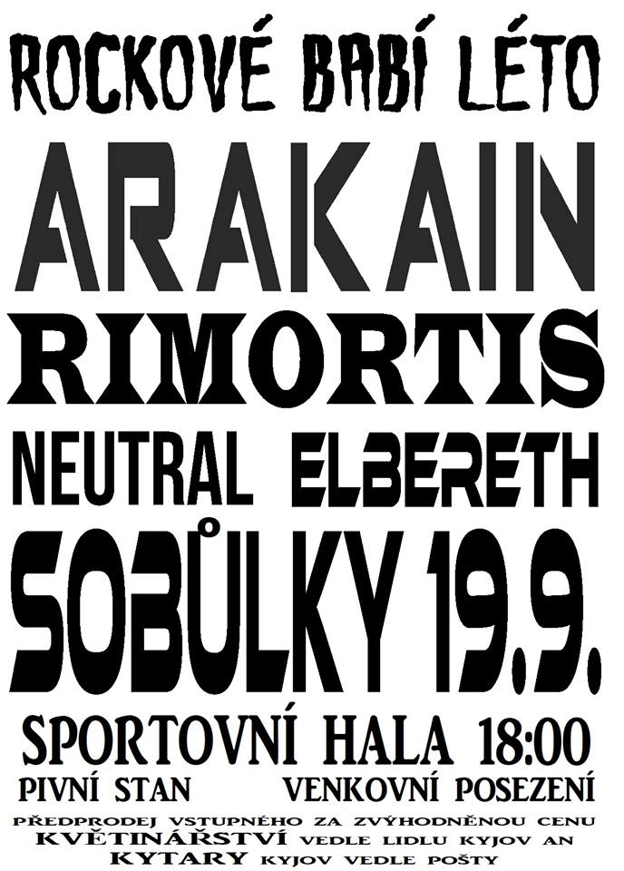Koncert se koná v rámci minifestivalu Rockové babí léto. Kromě Arakainu se představí také Rimortis, Neutral a Elbereth.