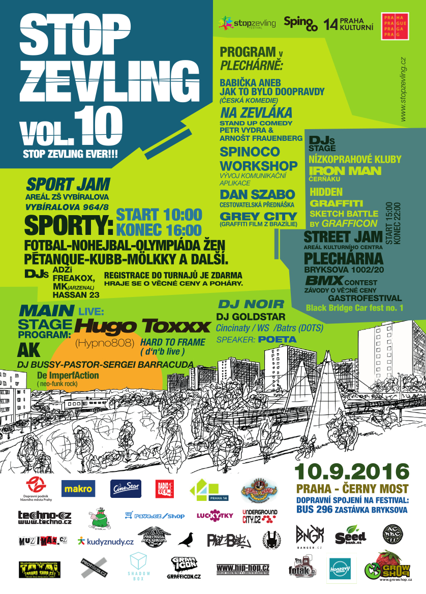 Festival pořádá Stop Zevling productions za podpory Praha 14 kulturní, kteří se na kulturním dění na Praze 14 podílí už přes 10 let. Společně tak budou již po 10. bojovat proti nudě a zevlování.