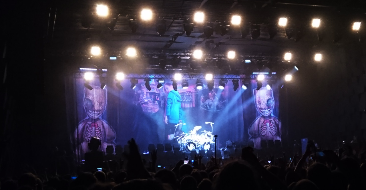 A pak to přišlo. Respektive zvukovka a chystání stage. Jak někdo trefně poznamenal na facebooku: „Legendární kapelu poznáte tak, že už samotný stojan na mikrofon sklízí při přinesení bouřlivý aplaus.“. Nunto říct, že ten, kteří mají Korn je jedinečný, takže samozřejmě nesměl chybět. A kolem deváte vešli na podium i samotní chlapci. Vše odpálili Right now a začala tak hodinu a půl trvající numetalová smršť. Na to, že je tour částečně promem k nové desce The Serenity of Suffering, z ní příliš mnoho ukázek nezaznělo – pouze Insane a Rotting in Vain. Myslím ale, že nikomu nevadilo, že Korn vsadili spíše na staré osvědčené fláky jako Blind, Somebody Someone či Falling Away From Me a Freak on a Leash jako přídavek (kompletní setlist pod článkem). Došlo také na Jonathanovy klasické skotské dudy na úvodu Shoots and Ladders a též na působivé sólo na bicí, které Ray vystřihl vskutku ukázkově.