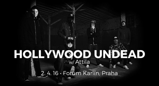 Po úspěšném koncertu ve Velkém sále Lucerny se do Prahy vrací jedna z nejpopulárnějších rap-rockových formací, američtí Hollywood Undead. Tentokrát vystoupí 2. dubna 2016 ve Foru Karlín. Vstupenky budou k dostání od 30. října v 10h na GoOut.cz a v síti Ticketpro. Cena lístku je 790 Kč včetně poplatků.