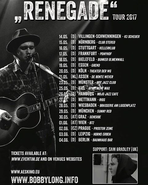 Bobby Long je britský zpěvák a songwriter žijící v New Yorku. V Americe je již velkou hvězdou a posledních pár let se mu také daří v Evropě, především v Německu, kde vyprodává ty největší kluby. 2. června odehraje Bobby svůj jediný český koncert v Praze. Bobbymu Longovi se v minulých letech dostalo od diváků v ČR velmi srdečného přijetí, kdy zahrál 2x v Olomouci). Tentokrát do české metropole přijíždí při příležitosti evropského turné Renegade.