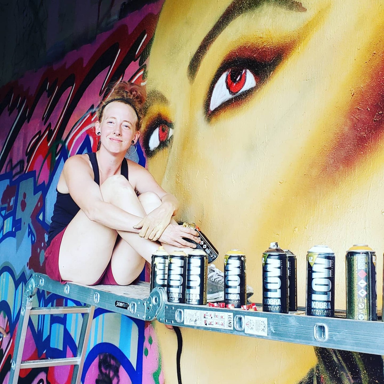 Sharleen Mayberry je americká výtvarnice z Texasu. Je samouk a ráda experimentuje s novými technikami, nejnověji ji okouzlil street art. Sprejem tvoří velké nástěnné malby, v angličtině známé jako murals. Kromě toho ji baví metalová muzika a je fanynkou kapely Infected Rain s velmi výraznou červenovlasou dredatou potetovanou frontmankou Elenou Kataraga, známou jako Lena Scissorhands.