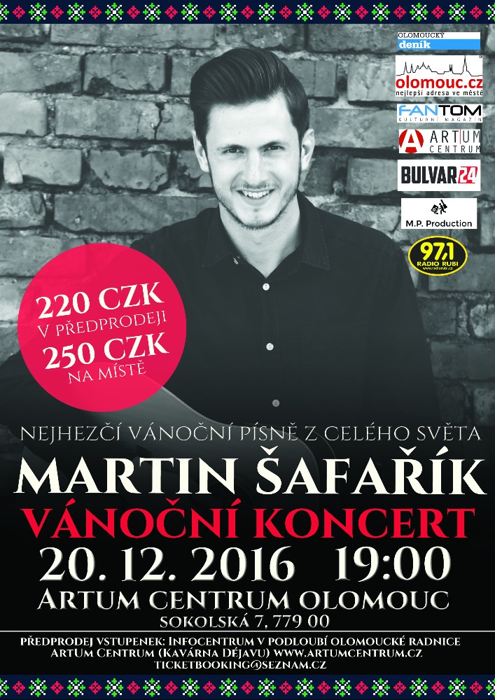 Martin Šafařík, který uspěl ve finále Česko-Slovenské SuperStar 2013, je osobně i profesně spjatý s hanáckým regionem. Tím spíše se nabízí, že Olomoučanům zpříjemní předvánoční čas adventním koncertem. Ten se uskuteční v úterý 20. prosince v 19:00 v ArtUm Centru.