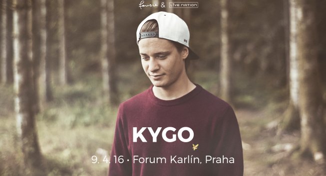 Norská producentská superstar Kygo se vrací do Prahy. V sobotu 9. dubna 2016 roztančí Forum Karlín. S sebou přiveze i dlouho očekávané debutové album, které má vyjít 2. února 2016. Předprodej vstupenek bude zahájen v pátek 11. prosince na GoOut.cz a v síti Ticketpro. Lístky v první vlně budou stát 590 Kč, po jejich vyprodání se cena zvyšuje na 690 Kč.