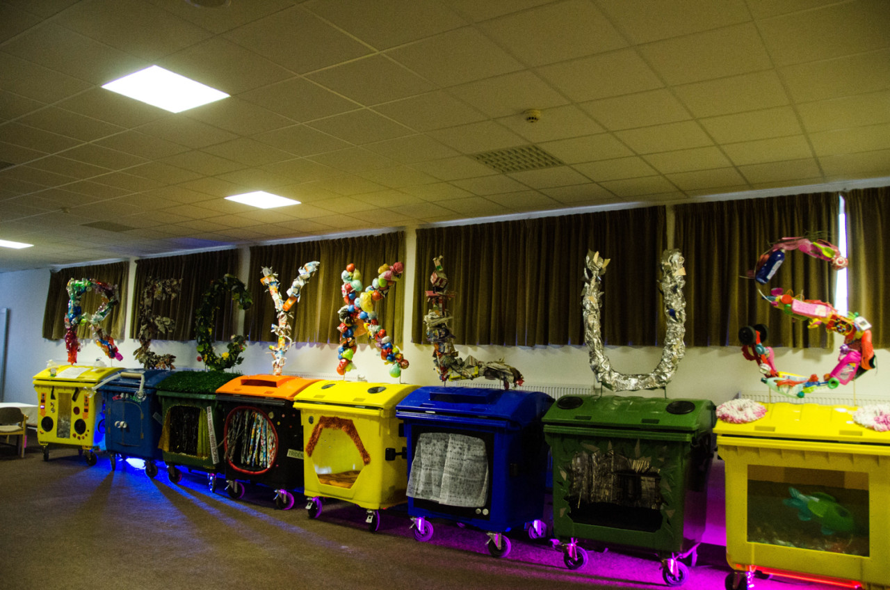 Celý večer byl, jak už název tour napodívá, značně ekologicky laděn. Každý příchozí dostal "tetovačku" s okem, které je znakem této šňůry a má symbolizovat, že nemáme zavírat oči před problémy naší planety. U vstupu do sálu byly popelnice na třízený odpad, kdy nad každou bylo z recyklovaných materiálů vytvořeno jedno písmenko z názvu tour: "RECYKLUS". Navíc do každé se dalo vlézt a tak se děti, kterých tam rozhodně nebylo málo, alespoň nenudily, když jejich doprovod čekal ve frontě na pivo (do zálohovaných vratných kelímků, s obrázkem Tomáše a kapely, samozřejmě). Ostatně fronty byly velké už při vstupu do haly. Bylo vidět, že se Klus těší opravdu velké oblibě, protože pardubický Ideon skutečně praskal ve švech.