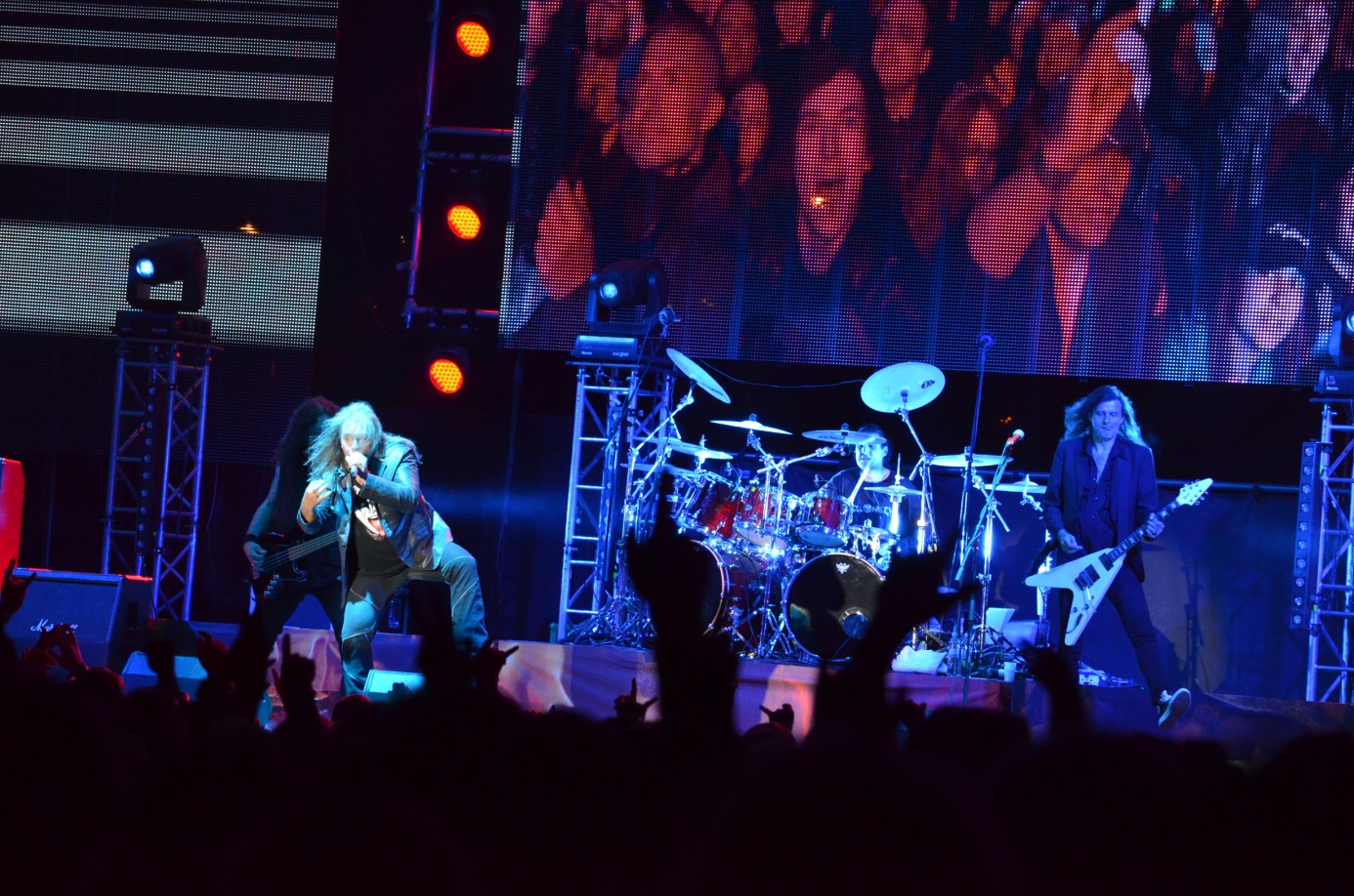Kolem 11:15 vypuklo to pravé metalové, kvůli kterému se zde sjelo mnoho lidí z celé České republiky. Německá power metalová legenda Helloween započala vystoupení svým typickým intrem po jehož spuštění se ozval mohutný potlesk a pokřik fanoušků této kapely, kteří zaplnili celou plochu před pódium. Havířov se musel zatřást a helloween začal sypat jednu pecku za druhou. V průběhu vystoupení nebylo nouze o komunikaci s publikem, které bylo několikrát vyzváno ke zpěvu. Nechybělo ani bicí sólo a velmi zábavný byl zpěvák kapely Andi Deris, který si stěžoval na chladné večerní počasí. Poslední tři skladby vystoupení byli Dr. Stein, Future World a I want out. Tato trojice skladeb byla luxusním vyvrcholením koncertu této legendární kapely, která proměnila Havířovské slavnosti 2013 na to pravé metalové místo, na které by se každý rád znova vrátil.